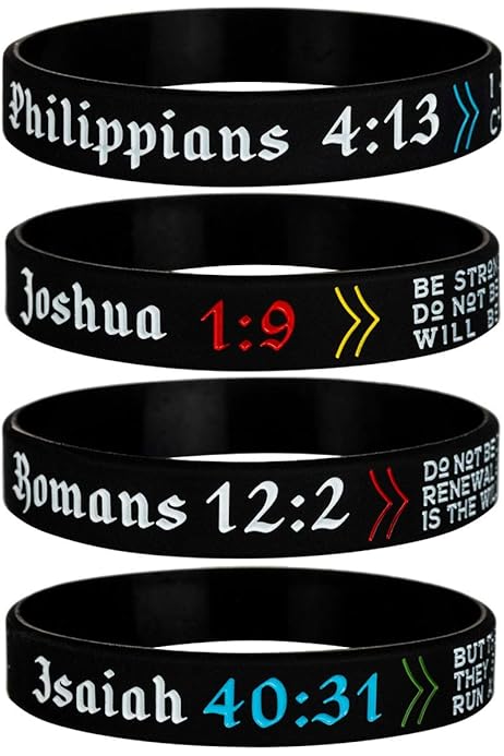 Amazon Com Sainstone 4 Pack Power Of Faith Christian Bible Verse Silicone Bracelets Philippians 4 13 Joshua 1 9 Romans 12 2 Isaiah 40 31 Religious Scriptures Wristbands Church Gifts Adult For Men Women Office Products